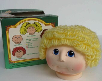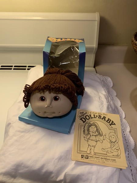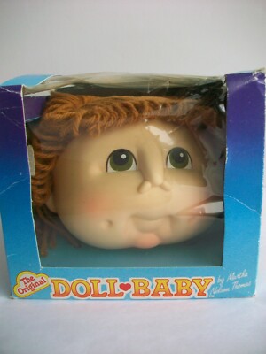 Te Original Doll-Baby by Martha nelson Thomas she was the actual woman who came up with cabbage patch in 1971 the guy who became famous for them was the one who ripped her off which was later settled in court so all the cabbage Patch attributes and dolls came from her with her ideas from the 70s. Vintage 1984 Original Little Doll Baby Head for Doll Making by Martha Nelson Thomas Strawberry Red Hair in Pony Tail. New item in a damaged package paperwork is in the bottom pictures 303650343119. Doll is in excellent condition with a vintage 80s sweat suit outfit. Sold by Vandelay Online and ships from Amazon Fulfillment. Head measures approximately 5 wide by 4 12 high and she has Yellow Pony tail yarn for hair. Te Original Doll-Baby by Martha nelson Thomas she was the actual woman who came up with cabbage patch in 1971 the guy who became famous for them was the one who ripped her off which was later settled in court so all the cabbage Patch attributes and dolls came from her with her ideas from the 70s.