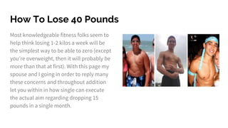 However taking it one step at a time and making a few minor modifications to your diet and lifestyle can make weight loss much more manageable. The 47-year-old actress-host was recently in Singapore to seek medical attention after having lost 15 pounds in one month. Itll take a lot more discipline and drive to lose 15 pounds in 30 days.